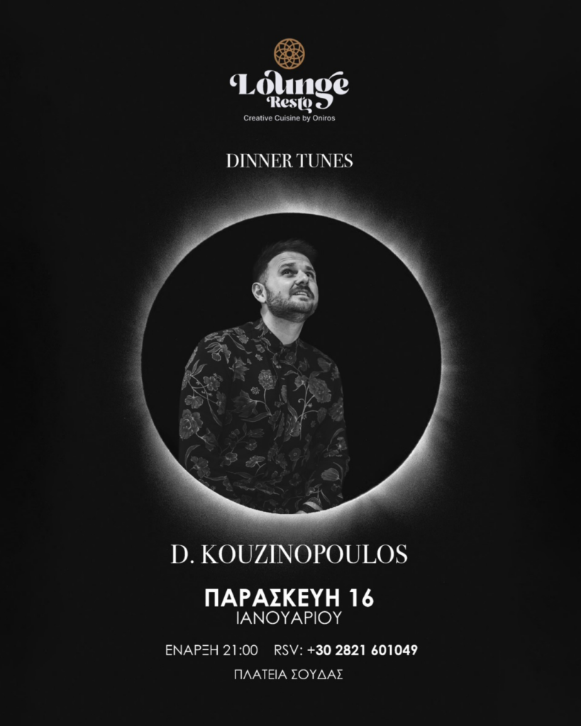 Oniros Lounge Resto hosts DJ D. Kouzinopoulos on Friday, January 16th at 21:00, for an evening of rhythm and contemporary musical selections. His set creates the ideal atmosphere for those seeking a complete musical experience that blends harmoniously with the culinary setting of Oniros Lounge Resto.