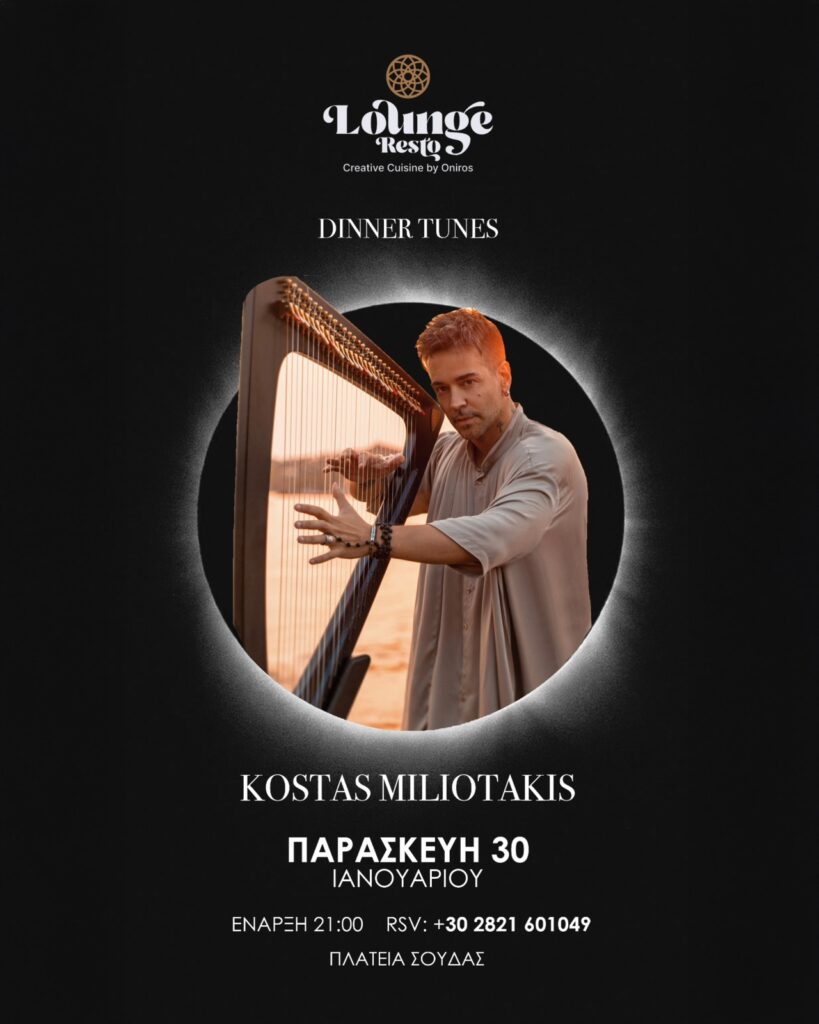 On January 30, Oniros Lounge Resto welcomes back one of the leading solo harpists and composers of his generation, Kostas Miliotakis, at 21:00.With the enchanting sound of the harp, Kostas Miliotakis invites us on an emotional musical journey.